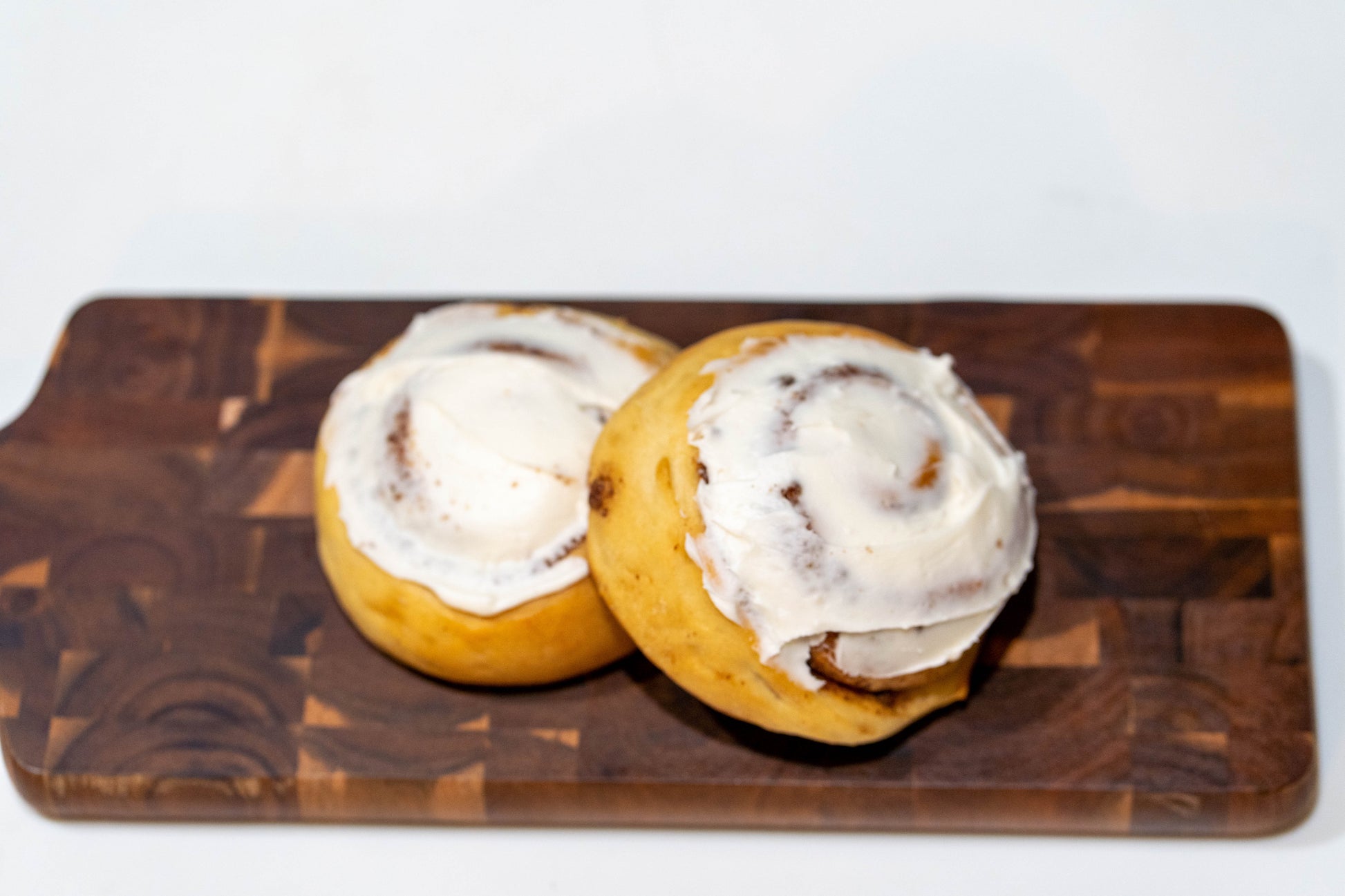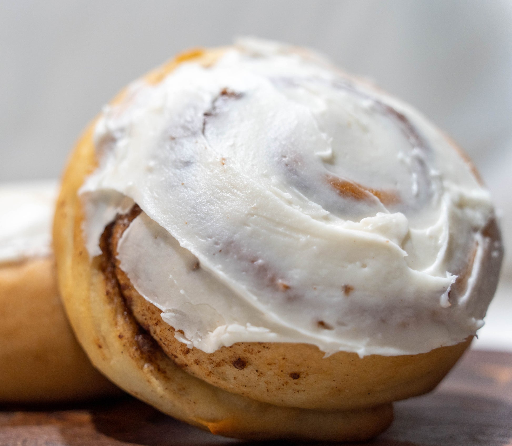 A Breakfast Classic! Soft dough with rolls of warming brown sugar and cinnamon, topped with a creamy icing.