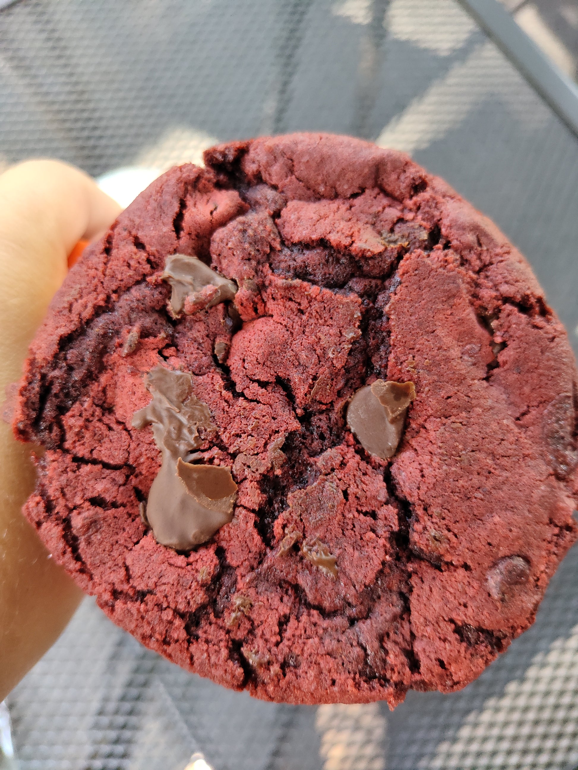 A rich, fudgy cookie packed with chocolate chips. The perfect blend of cookie and cake!