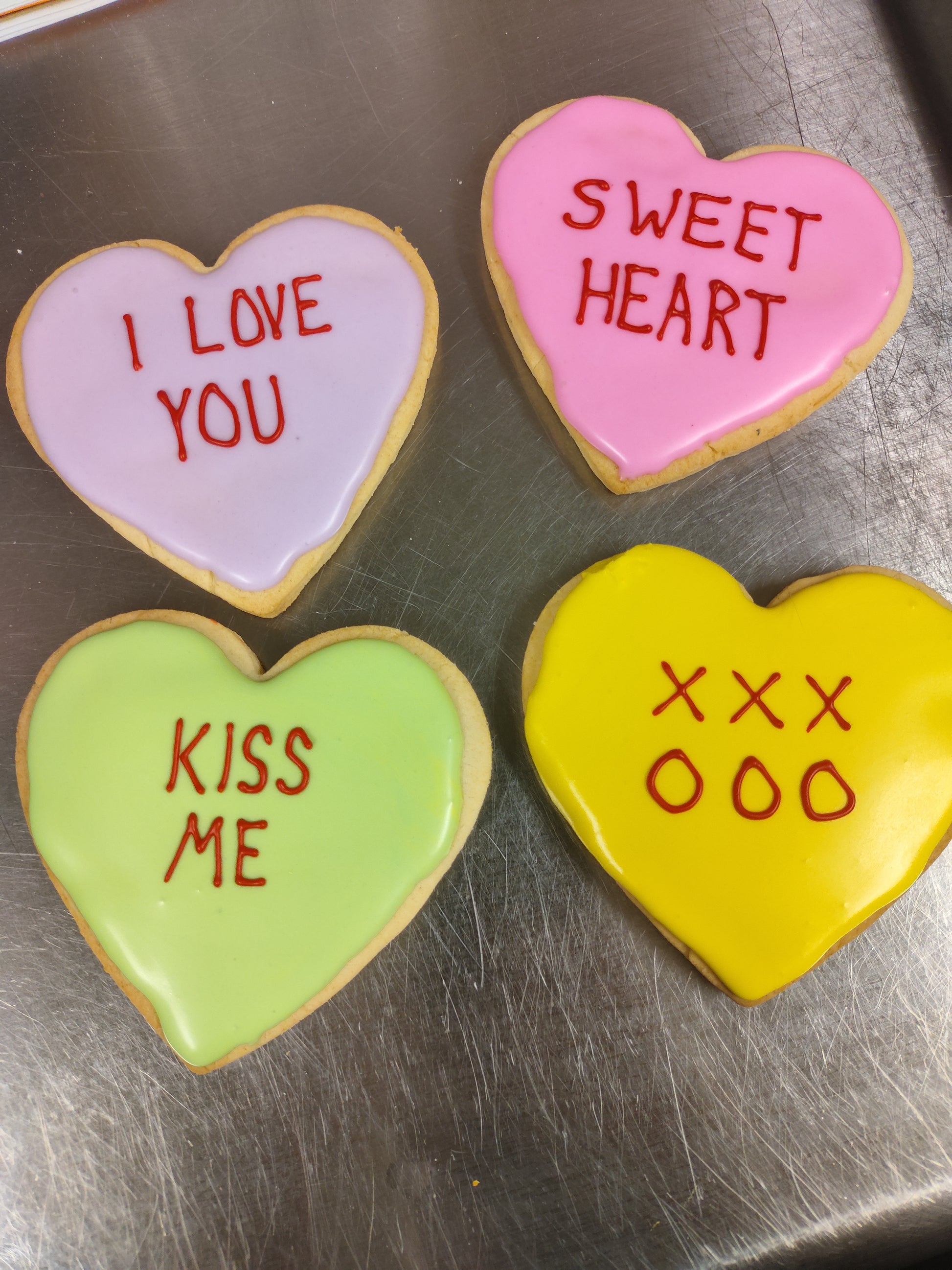 A vanilla bean sugar cookie decorated with a slightly lemon icing, these cookies can be customized with any message you'd like! Please write in the notes section the message you'd like written on the cookie, or specify the style you'd like (smiling heart or conversation heart). Pickup or delivery is only on Valentine's Day. Please place your order by 2/10.