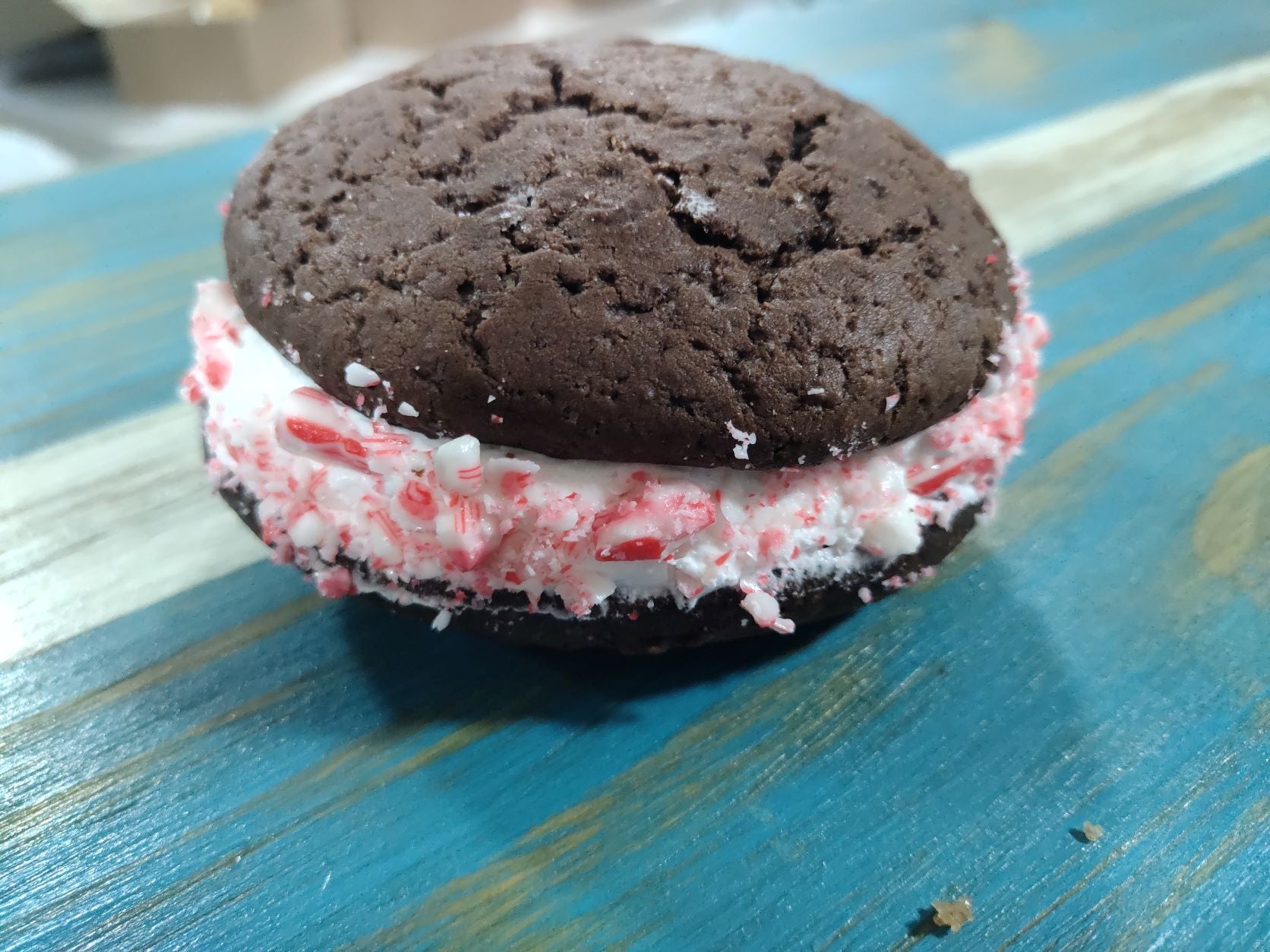Two cakey chocolate cookies sandwiched together with your choice of filling- classic marshmallow of Candy cane!